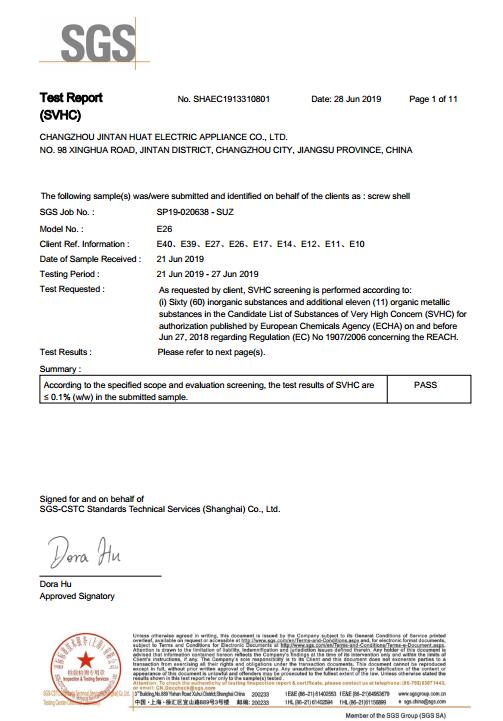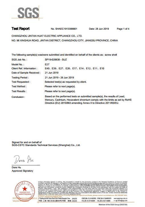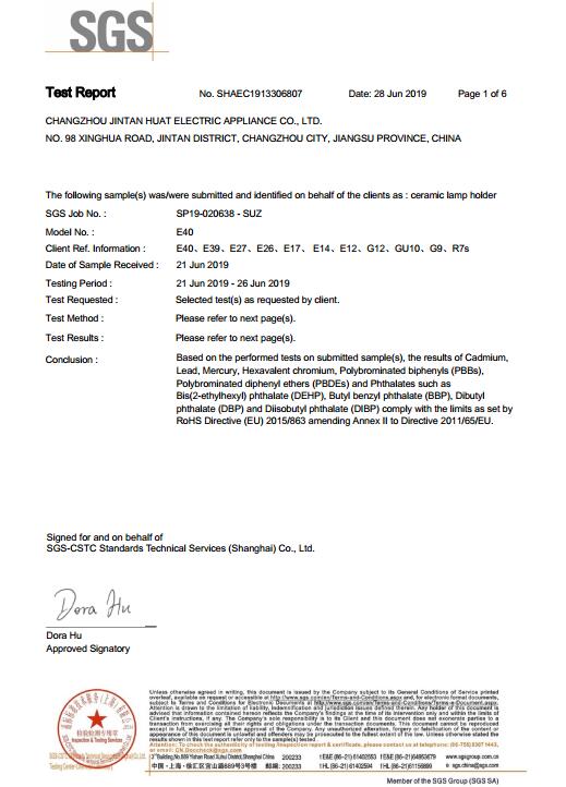 RoHS報告陶瓷燈頭
